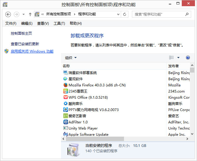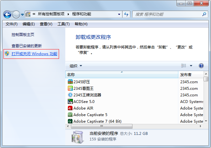 找到“程序和功能”下的“啟用或關閉Windows功能”。如圖: