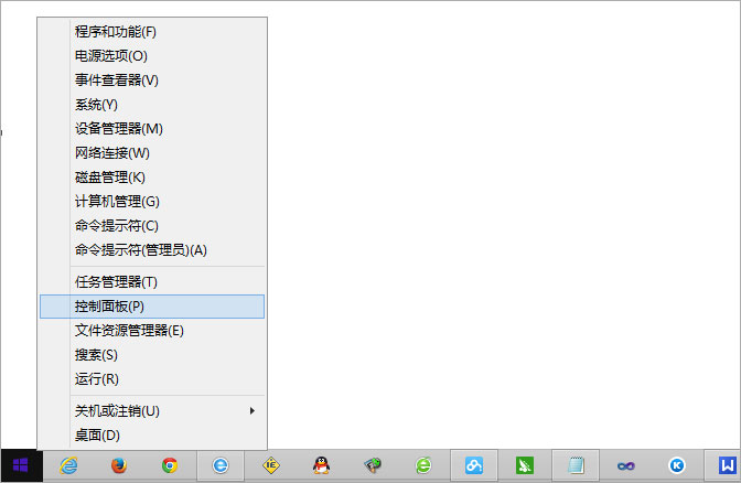 按鍵盤上的win+x?;蛘哂覔糇烂娴拈_始菜單。在彈出的菜單中,選擇“控制面板”。