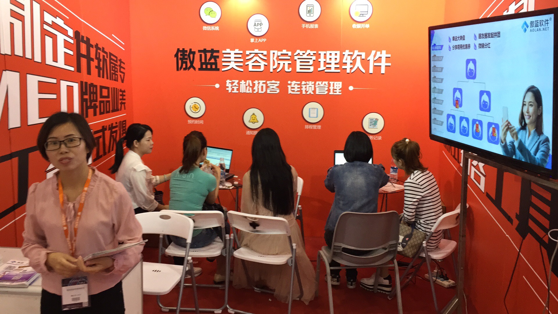 傲藍美容院管理軟件在本次美博會當中帶給各大美容院、養生會館、連鎖美容院全面的門店經營管理+手機APP+微信會員系統+移動支付等規范化管理的體驗。