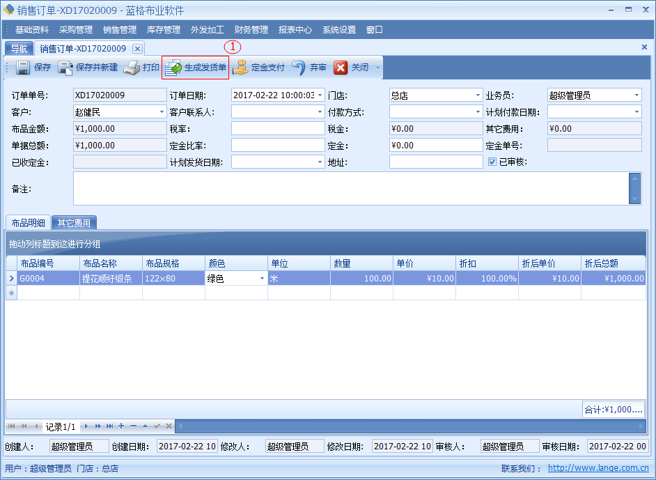 訂單審核后,可快速的生成銷售發貨具體步驟如下圖