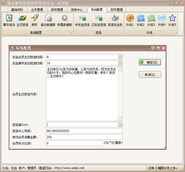 傲藍服裝銷售管理系統(tǒng)短信開關