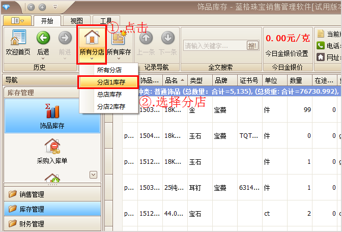 傲藍珠寶管理軟件快捷查看珠寶庫存,有助于采購與銷售決策