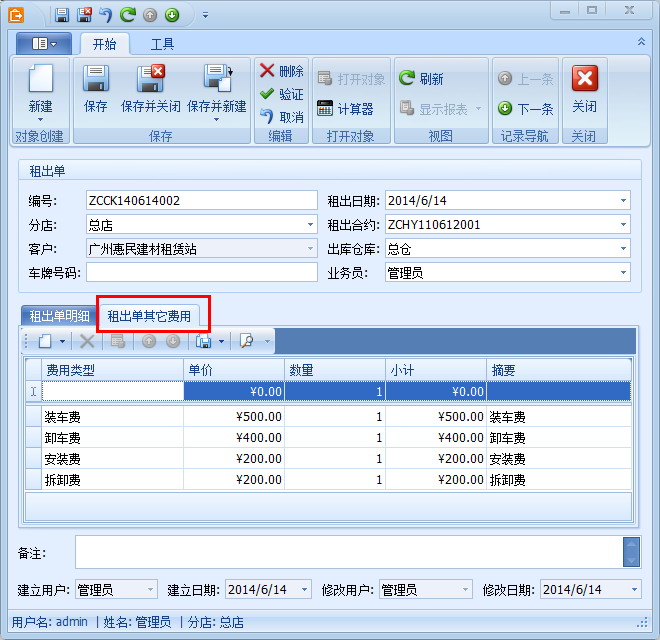 傲藍(lán)鋼管扣件租賃計(jì)費(fèi)軟件如何添加裝車費(fèi)、卸車費(fèi)