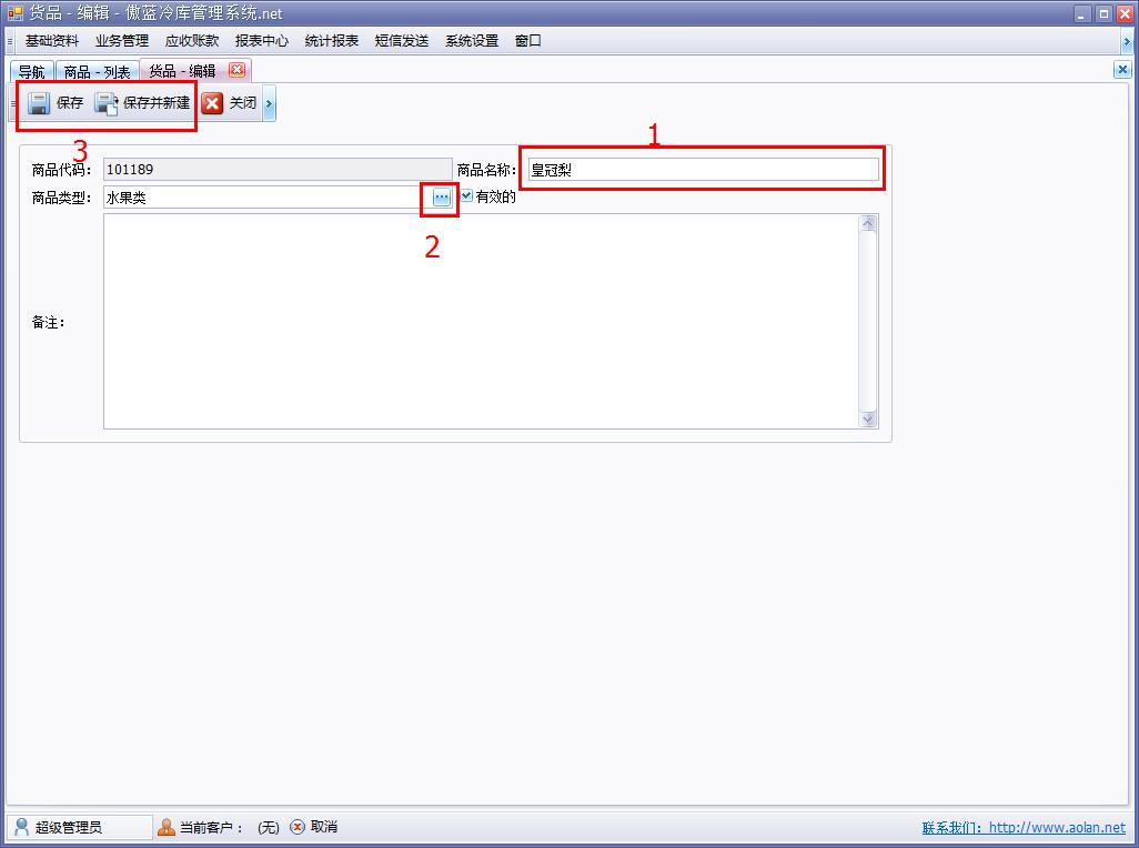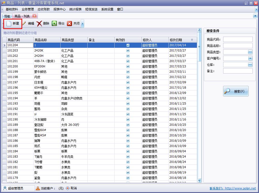 傲藍冷庫信息管理系統,管理商品詳細資料