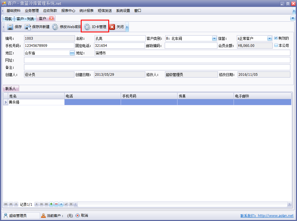 傲藍冷庫信息管理系統,利用ID卡進行高效管理,提高業務效率