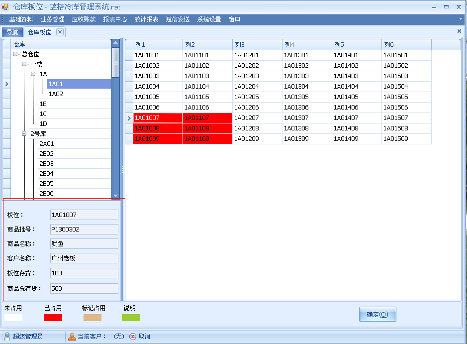 傲藍冷庫管理軟件通過無線手持終端設備管理,分細管理倉庫庫位、板位,讓冷庫更清晰每個倉庫板位的使用情況。庫板位占用管理是指使用冷庫管理系統可以任意錄入多個倉位,倉位里面還可以建立多個板位,對倉庫進行階梯式的管理,有利于冷庫企業更好的管理倉庫存貨,以及倉庫的占用情況。
