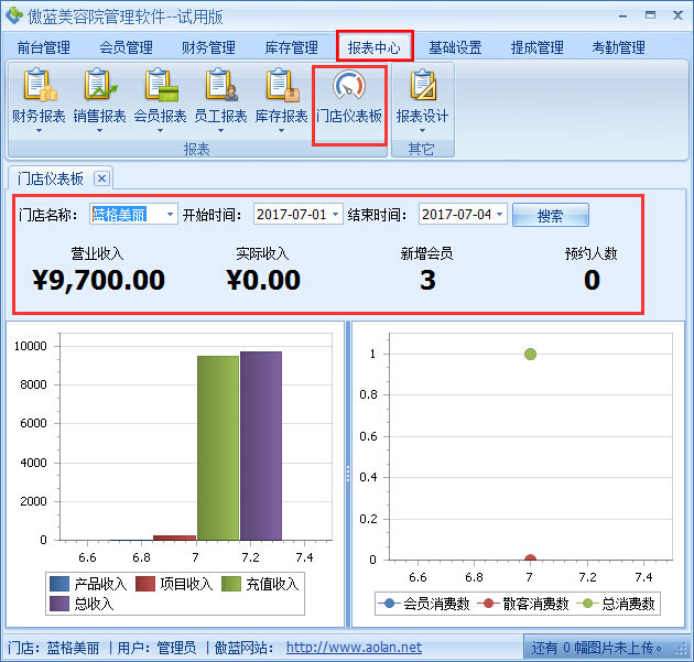 2、傲藍美容院會員管理軟件豐富的會員統計分析報表,幫助美容院管理者對會員做宏觀了解,便于做決策。