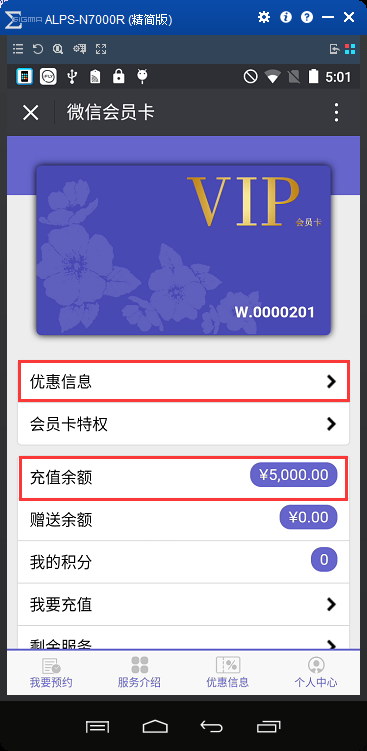 ①會員在微信公眾號自助充值之后,還可以在【會員中心】→【會員卡】即可查看會員卡內的余額,此外,會員可以在會員卡管理界面,查看門店的優惠信息,吸引會員到店消費。如圖: