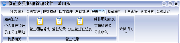 - 報表中心:皮具護理店營業記錄報表分店、總店一鍵查詢