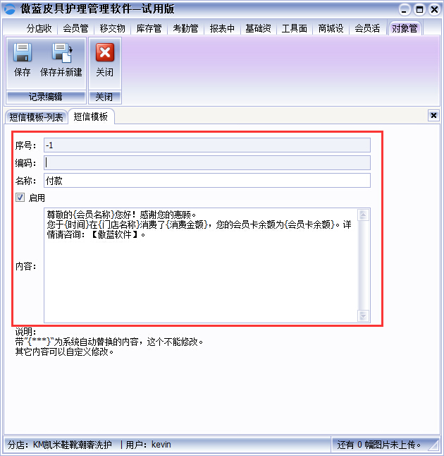 傲藍(lán)皮具修理店連鎖軟件支持利用系統(tǒng)群發(fā)短息給客戶,一般支持通知類短信內(nèi)容下發(fā),如:通知客戶取衣、發(fā)送生日祝福、節(jié)日溫馨問候或消費(fèi)通知等。那么在軟件中具體是怎么操作的呢?
