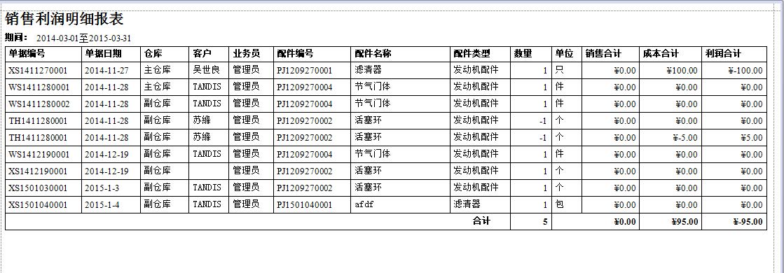 傲藍(lán)配件銷售管理軟件,有著強(qiáng)大的報表管理功能,如銷售利潤明細(xì)報表和銷售利潤匯總報表,可查詢單個配件的利潤和公司總的利潤,方便經(jīng)營管理者對銷售進(jìn)行分析,掌控銷售!在功能導(dǎo)航里面,找到報表管理,點擊銷售利潤明細(xì)報表和銷售利潤匯總報表,輸入需要查詢的日期即可: