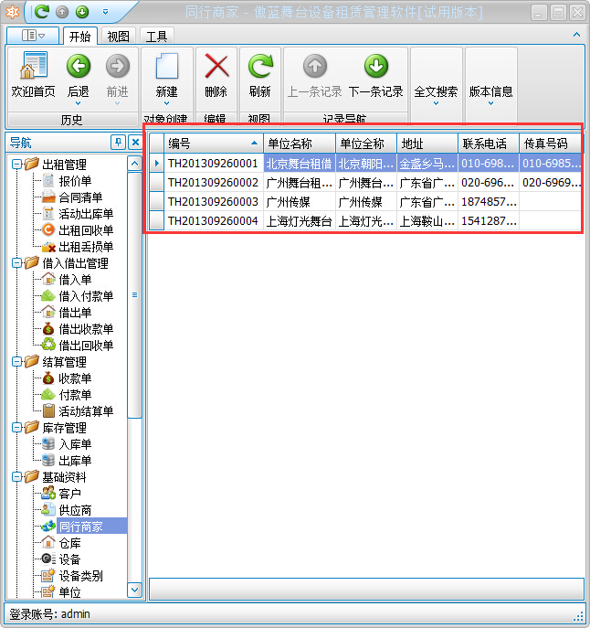 舞臺設備租賃管理軟件|同行商家信息管理