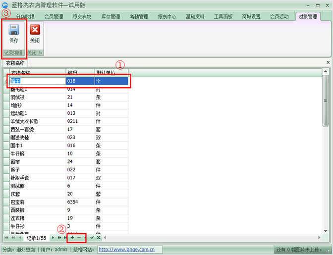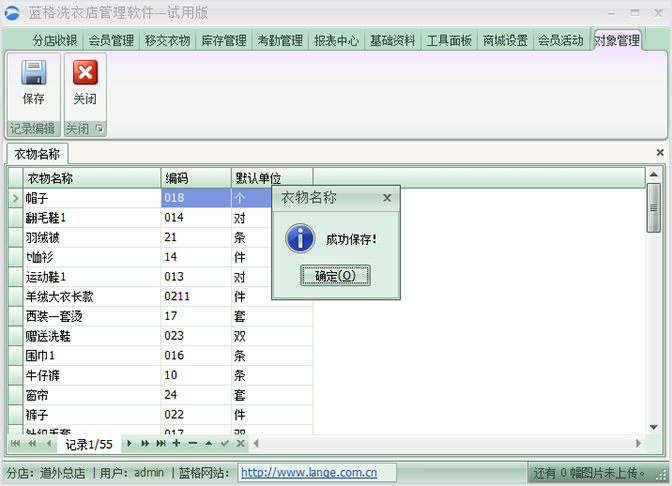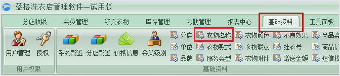 傲藍(lán)洗衣店系統(tǒng)添加衣物名稱步驟