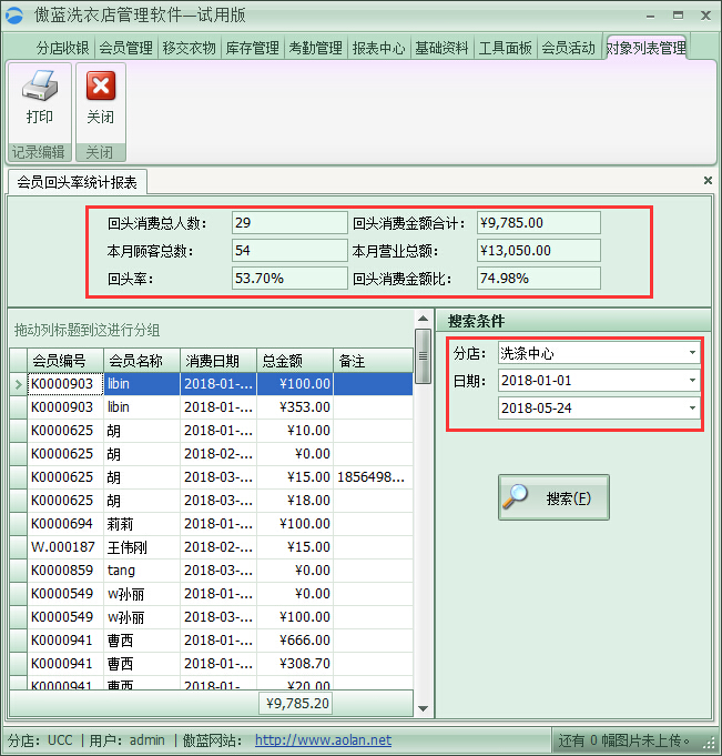 洗衣會員管理系統(tǒng)會員回頭率統(tǒng)計報表功能