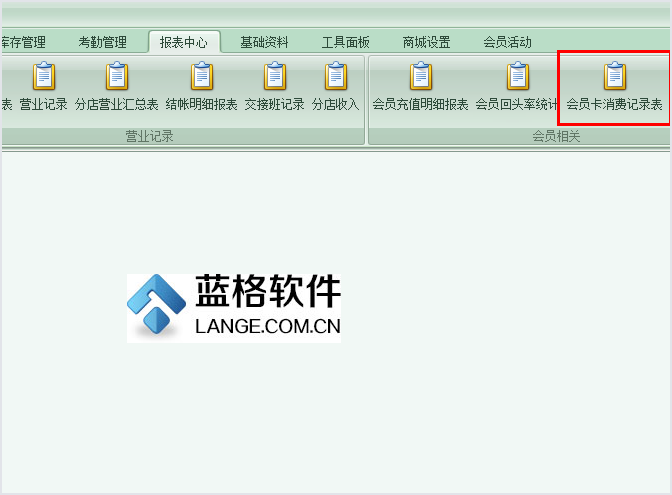 1、打開傲藍洗衣店會員管理軟件,點擊【報表中心】欄目,跳轉到報表中心內容界面。