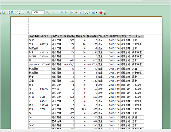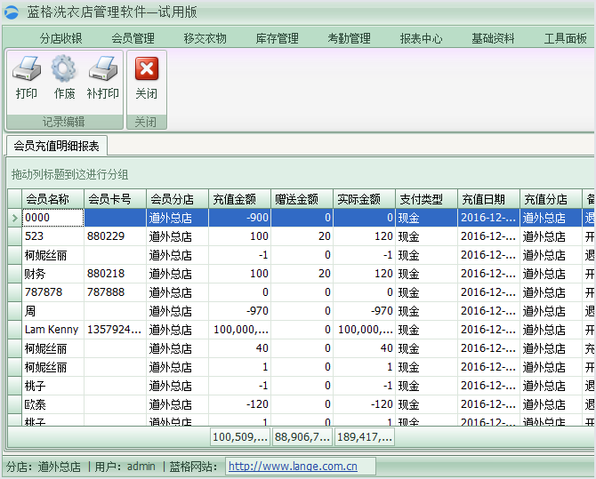 傲藍(lán)干洗店會(huì)員管理軟件會(huì)員充值明細(xì)報(bào)表