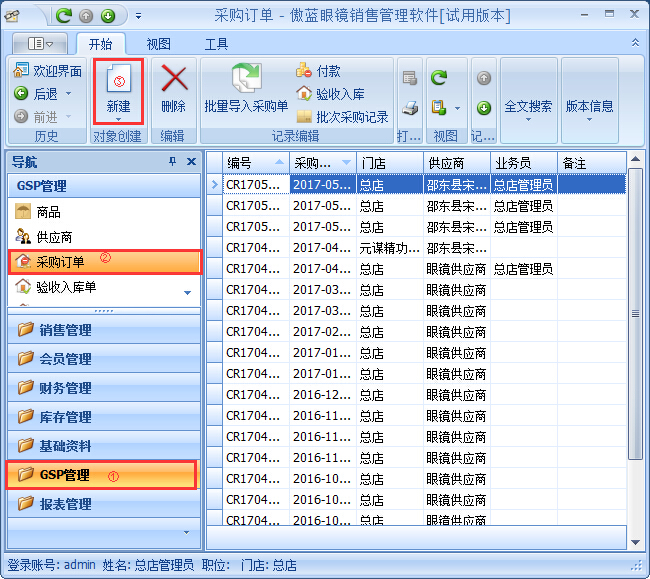 傲藍(lán)眼鏡銷售管理軟件GSP管理-采購(gòu)入庫(kù)管理