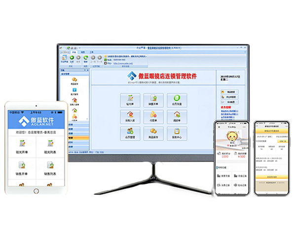 傲藍眼鏡店連鎖管理軟件,支持眼鏡店連鎖、加盟管理,數據實時同步,總部統一掌控,會員資料信息互通共享,多少店都能輕松管理。